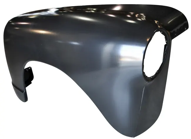 All of our fender patch panels are stamped steel. The stamping process starts with a 3D scan of an OEM part which produces an OEM-like fitment. The old panel will need to be cut out so that the new one can be welded in its place.