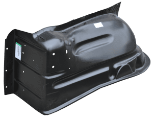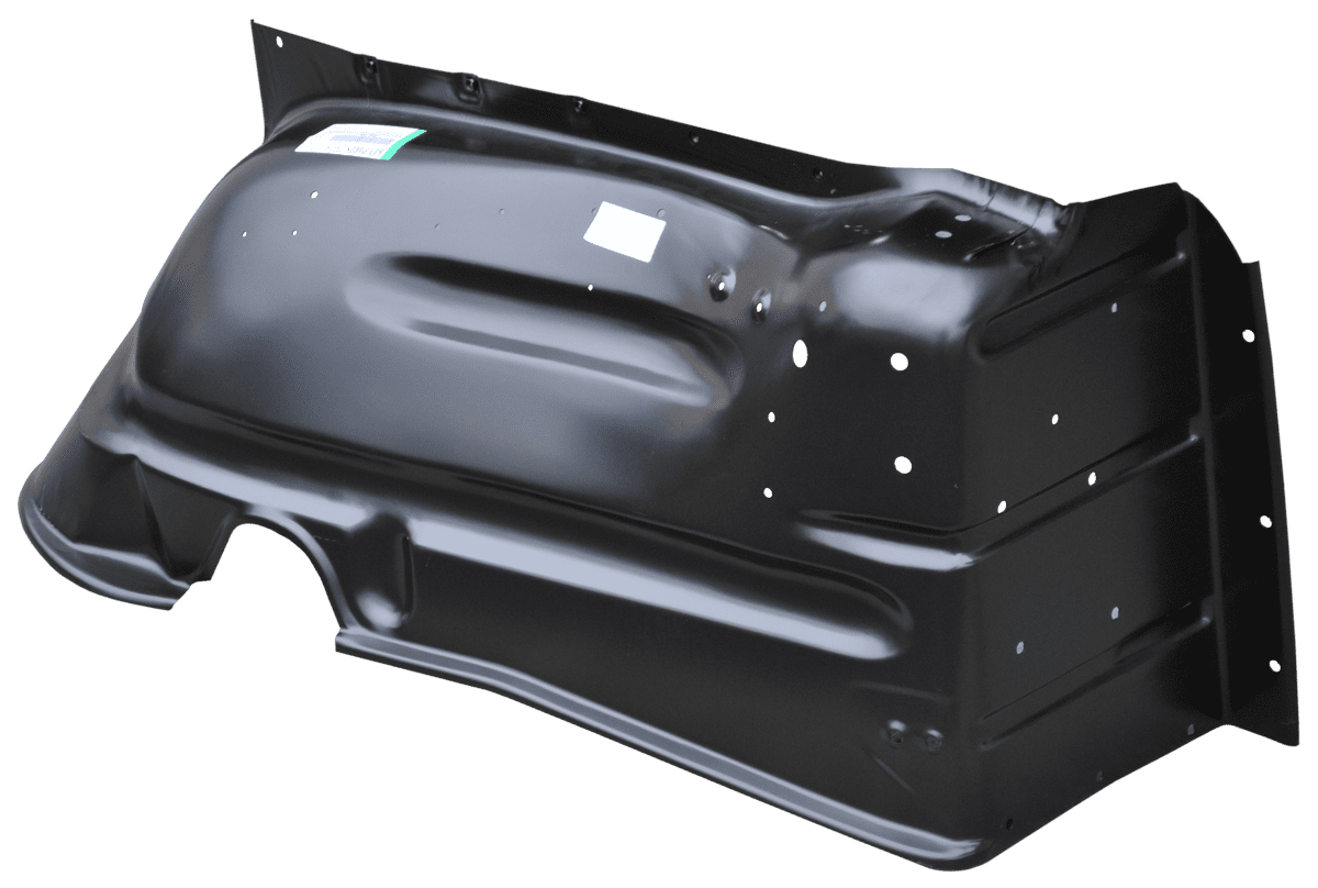 All of our fender patch panels are stamped steel. The stamping process starts with a 3D scan of an OEM part which produces an OEM-like fitment. The old panel will need to be cut out so that the new one can be welded in its place.