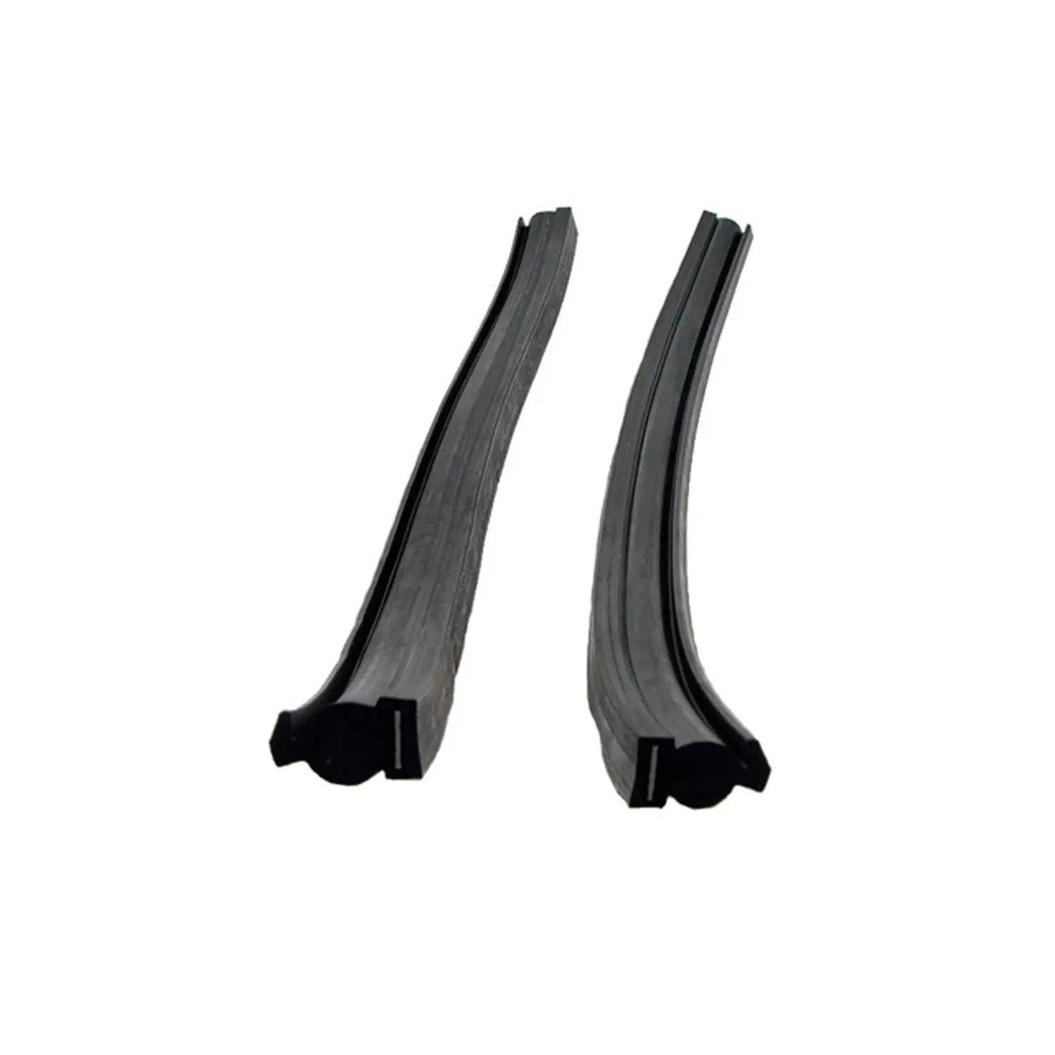 Rear Roll-Up Seals/Gaskets, for 2-Door Hardtops and Convertibles. For leading edge of rear roll-up quarter window. Two pieces, 14″ long. Pair. Made from state-of-the-art rubber compounds with sunlight, ozone, and chemical resistant materials. None of Metro’s parts use accelerants or cheap fillers in the molding processes, which can cause the part to prematurely age and fail.