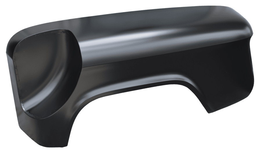 All of our fender patch panels are stamped steel. The stamping process starts with a 3D scan of an OEM part which produces an OEM-like fitment. The old panel will need to be cut out so that the new one can be welded in its place.