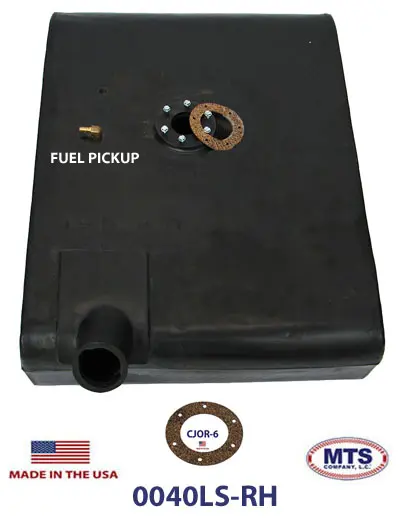 1961-1965 Jeep CJ 3B serial #39838 and up polyethylene fuel tank. This is an under the “passenger” seat tank with a 6 screw sending unit hole and a straight filler pipe. The pickup tube comes installed on the top of the tank. In-line fuel filter required. Includes new 6-hole sending unit gasket.