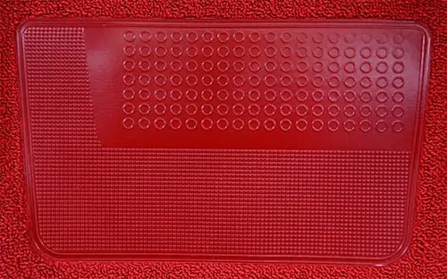This flooring is also available as a vinyl mat as well. Vinyl mats are made of 1/8″ thick industrial, non-skid, textured vinyl that is vacuum molded to fit the contours of your vehicle’s floor. All vinyl mats come with separate jute backing material that will cover the footwell areas. Just select vinyl from the material style dropdown above for this option.