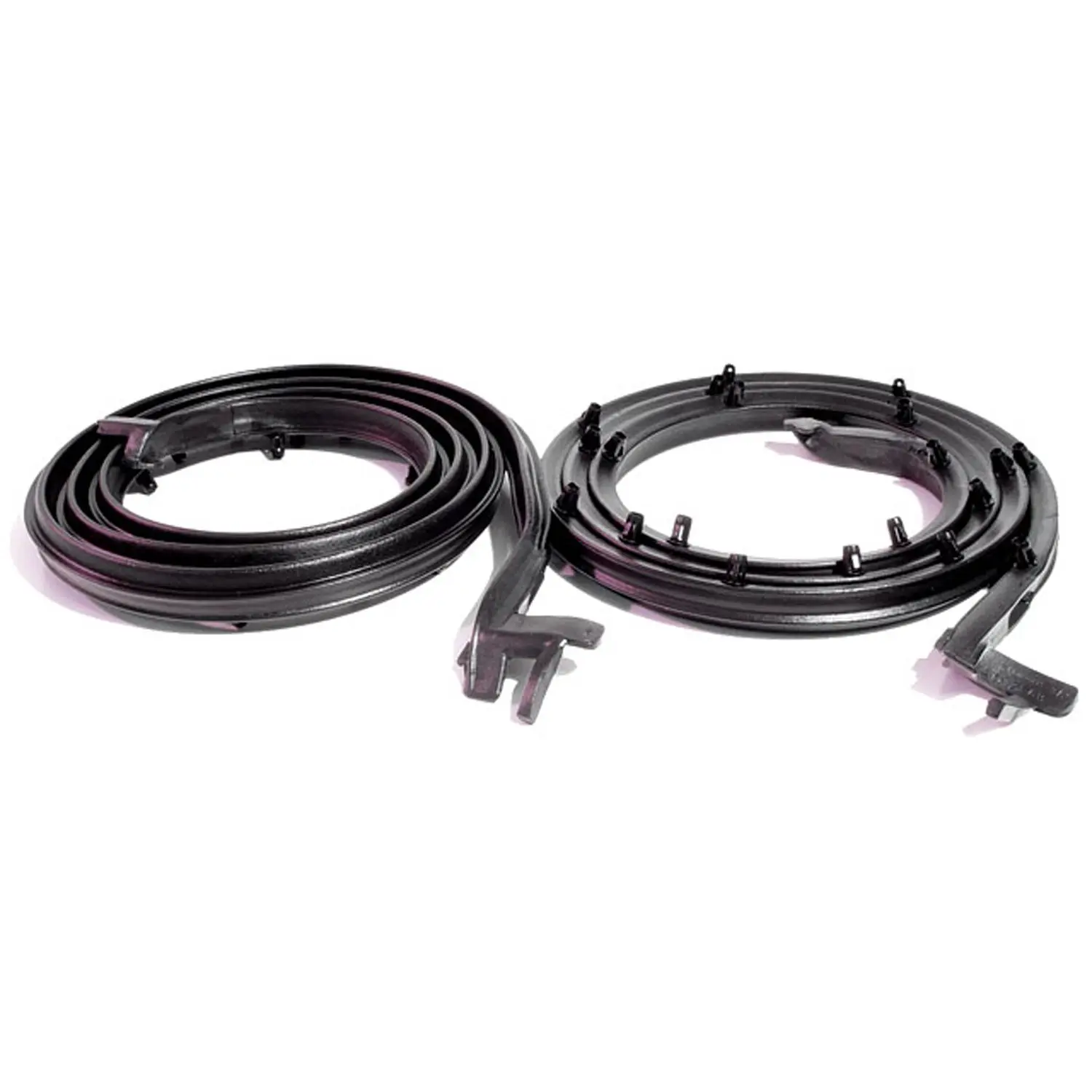 Molded door Seals/Gaskets. For 2-door coupe. (Also fits ’66-’81 IKA Torino 2-door coupe). Proper clips correctly positioned. 86-1/2 in. (219.71 cm) L. Pair. R&L. Metro parts are 30% softer and more durable than other brands. None of Metro’s parts use accelerants or cheap fillers in the molding processes, which can cause the part to prematurely age and fail