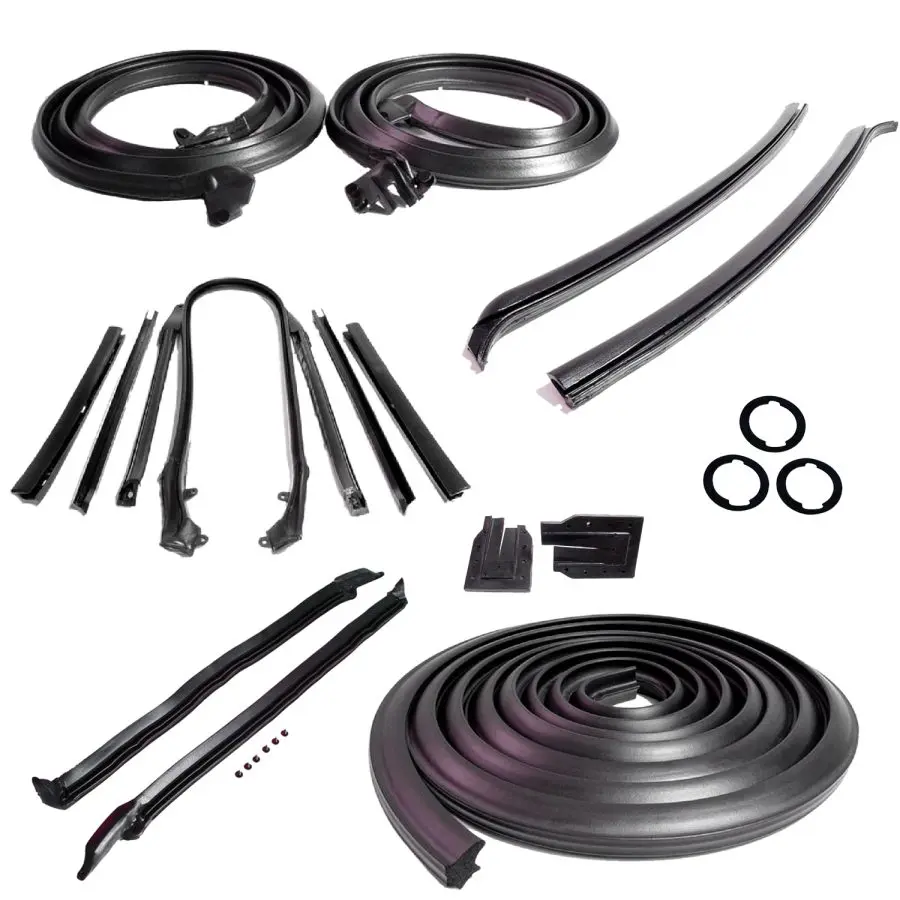 Master kit. Convertible. Molded door Seals/Gaskets (LM 12), roof-rail Seals/Gaskets (RR 1609), trunk Seal/Gasket (TK 46-16), door-lock pillar Seals/Gaskets (ALP 5000), door/trunk lock cylinder pads (UM 1600-100), rear roll-up Seals/Gaskets (VS 3-L), pillar post Seals/Gaskets (CZ 8107). Convenient kit tailored for your vehicle. Every part included is made of the highest quality