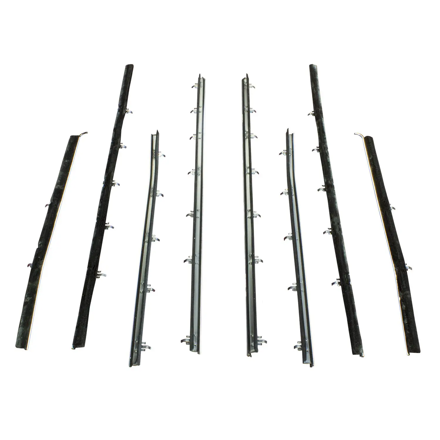 Window sweeper kit. Fits 2-door hardtop. OEM-replacement kit with chrome bead and fuzzy sweepers with proper clips ready to install. 8-piece set includes two front inner and two front outer sweeps, two rear inner and two rear outer sweeps. Accurate seal profiles,Superior form and function