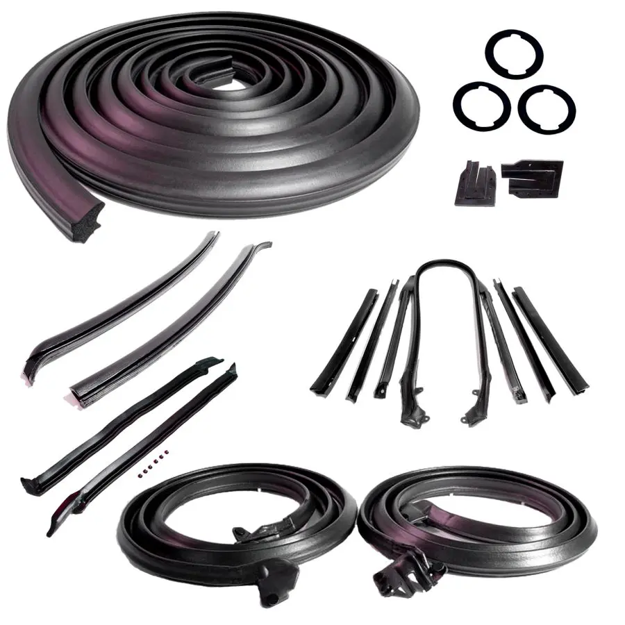 Master Kit for Convertible. Door Seal(LM 12), Roof Rail Seal(RR 1609), Trunk Seal(TK 46-16), Door Lock Pillars(ALP 5000), 3-Lock Cylinder Pad(UM 1600-100), Rear Roll-up Seal(VS 3-L), Pillar Post Seal(CZ 8107) Convenient kit tailored for your vehicle. Every part included is made of the highest quality