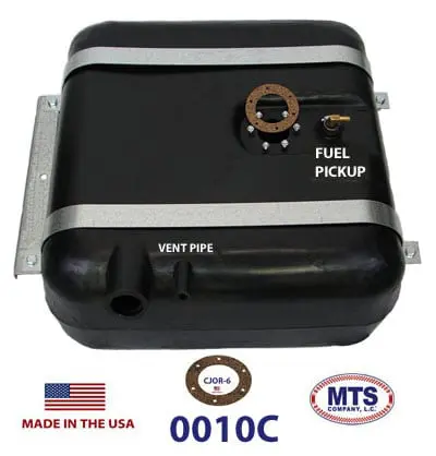 1967-1971 Jeep Commando 14 gallon “rear fill” polyethylene fuel tank. Fuel pickup tube comes installed on the top of the tank. Requires in-line fuel filter. Includes new 5-piece strap kit, sending unit gasket and vent pipe.