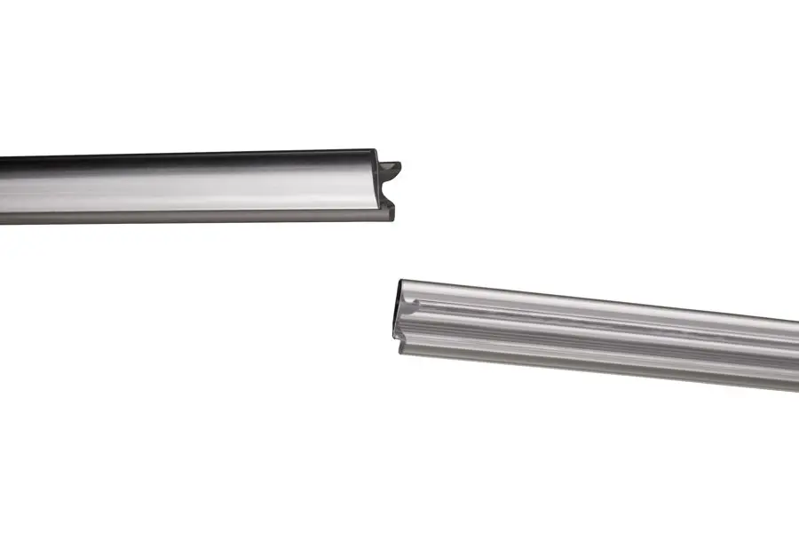 1967 Plymouth Barracuda 2 Dr Hardtop Glass Weatherstrip Chrome Lockstrip. This chrome locking strip fits into the glass seal to lock the rear window in place. It fits the 2 door hardtop models only. It is made from a rigid clear plastic material and has a chrome mylar file encased in the plastic which provides a chrome finish. Our product is made from the original specs and from high quality ozone resistant materials to fit your vehicle.