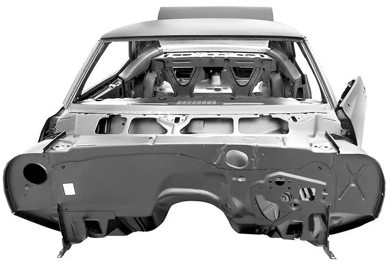 A: Dynacorn Classic Body Shells are 100% all-steel. Trunk floor thickness 1.0mm. Rocker panel thickness 2.0mm. Rocker panel inner brace thickness 3.0mm. Rear frame rails thickness 2.3mm. Firewall and torque bar thickness 1.2mm.
