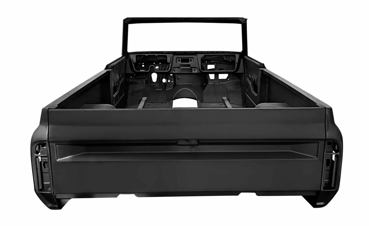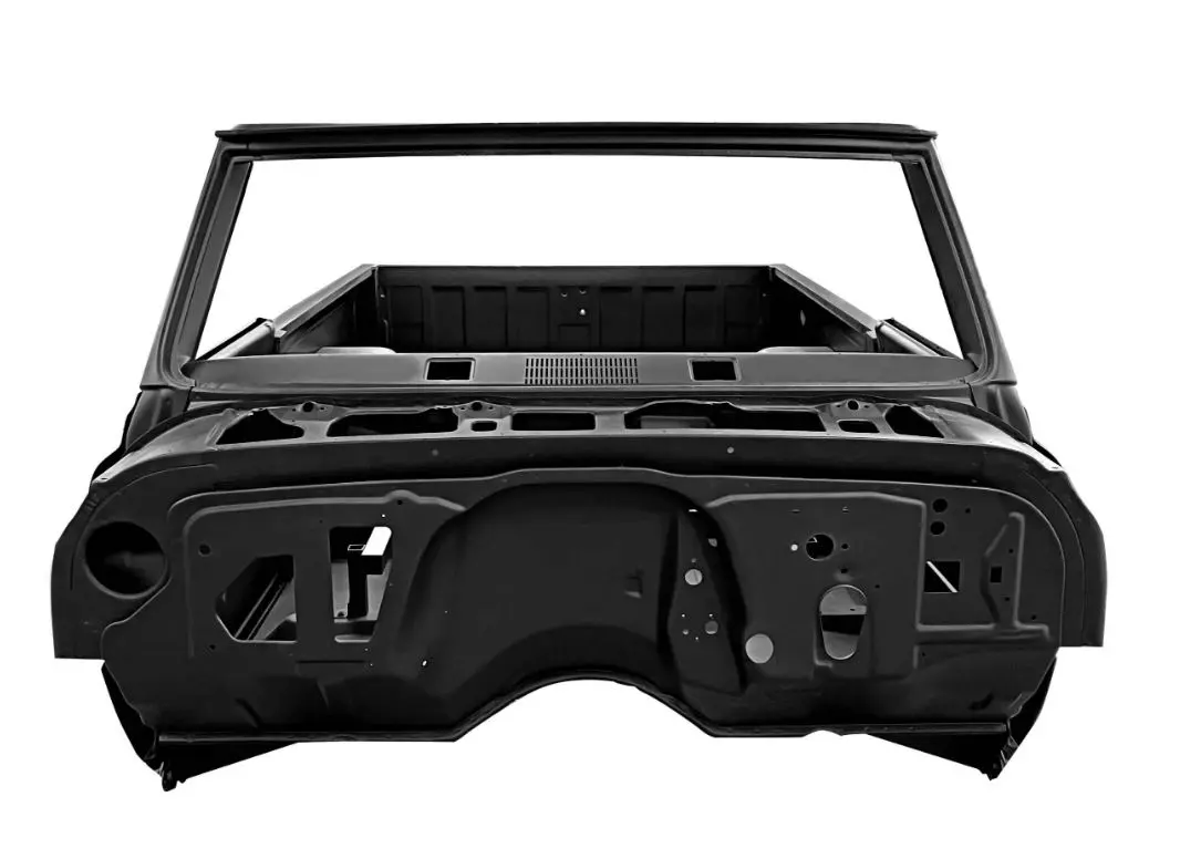 A: Dynacorn Classic Body Shells are 100% all-steel. Trunk floor thickness 1.0mm. Rocker panel thickness 2.0mm. Rocker panel inner brace thickness 3.0mm. Rear frame rails thickness 2.3mm. Firewall and torque bar thickness 1.2mm.