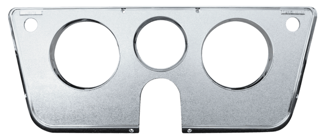 This 3 hole dash bezel, all chrome, fits:1969-1972 Chevrolet Pickup Truck, 1969-1972 Chevrolet Suburban, 1969-1972 Chevrolet Blazer, 1969-1972 GMC Pickup Truck, 1969-1972 GMC Suburban, 1969-1972 GMC Jimmy Measurement 22×9.5x.25 Weight 2lbs