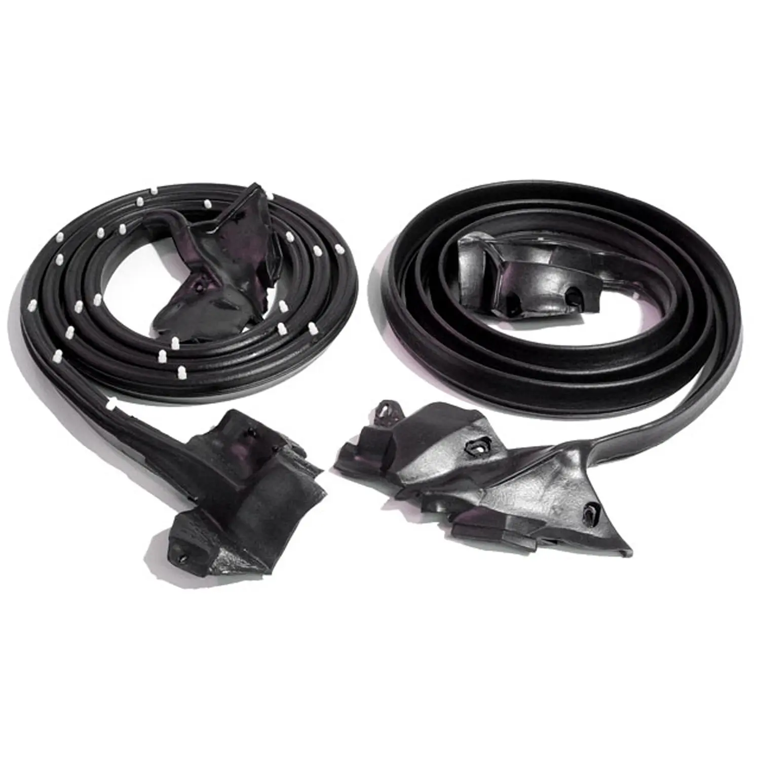 Molded Door Seals/Gaskets with Clips. For 2-door hardtops. Replaces OEM #9870752/3. Each is 95-1/4″ long. Pair. R&L Metro parts are 30% softer and more durable than other brands. None of Metro’s parts use accelerants or cheap fillers in the molding processes, which can cause the part to prematurely age and fail