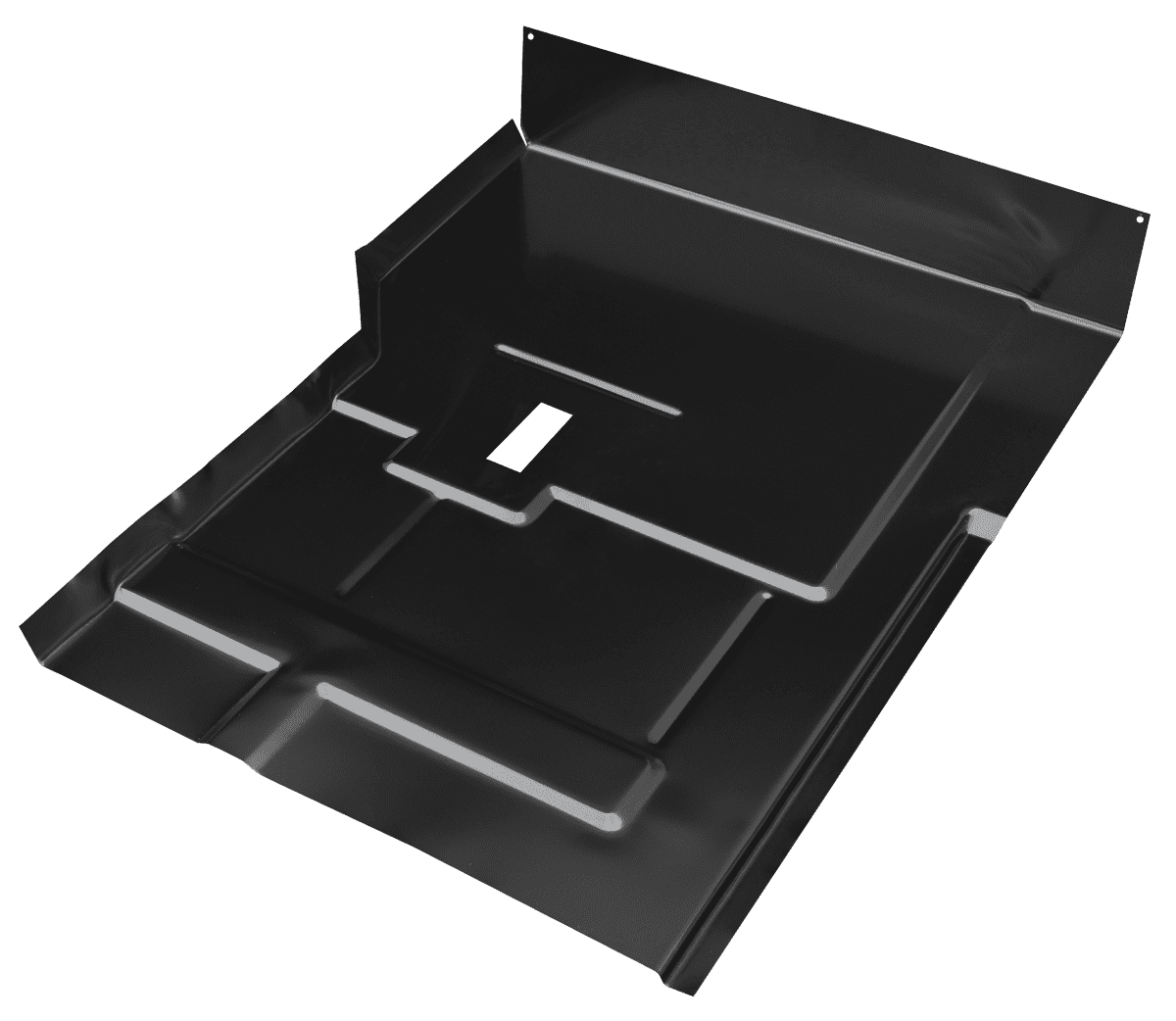 All of our replacement floor panels are stamped steel. The stamping process starts with a 3D scan of an OEM part which produces an OEM-like fitment. The old panel will need to be cut out so that the new one can be welded in its place.