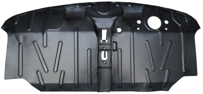 All of our replacement floor panels are stamped steel. The stamping process starts with a 3D scan of an OEM part which produces an OEM-like fitment. The old panel will need to be cut out so that the new one can be welded in its place.
