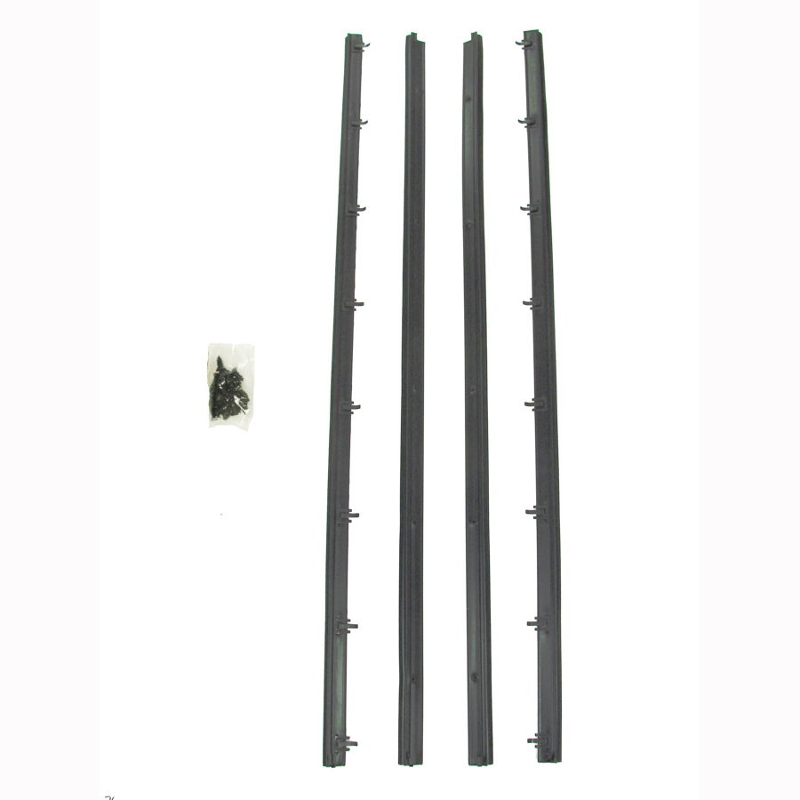 1975-1979 Chevrolet Nova 4 PC Beltline Molding Kit – Driver and Passenger. The beltlines mount with the pre-applied clips on the top inner and outer part of the door to squeegee the door glass. This is a 4 piece beltline kit for both driver and passenger doors. Protect your vehicle’s interior from the outside elements and reduce noise level while driving simply by replacing your dried-out or cracked weatherstrip with a proven product that’s accepted in the industry. These beltlines are made from the OEM specs to install and fit for an authentic appearance.