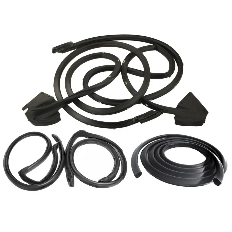 Basic kit. ’75-’79 Mopar B-body 2-door hardtop and coupe with descending B-pillar post and Opera windows. 7-piece kit includes left and right side door Seals/Gaskets, roof-rail Seals/Gaskets, door end-cap filler Seals/Gaskets, and trunk Seal/Gasket. Set. Convenient kit tailored for your vehicle. Every part included is made of the highest quality