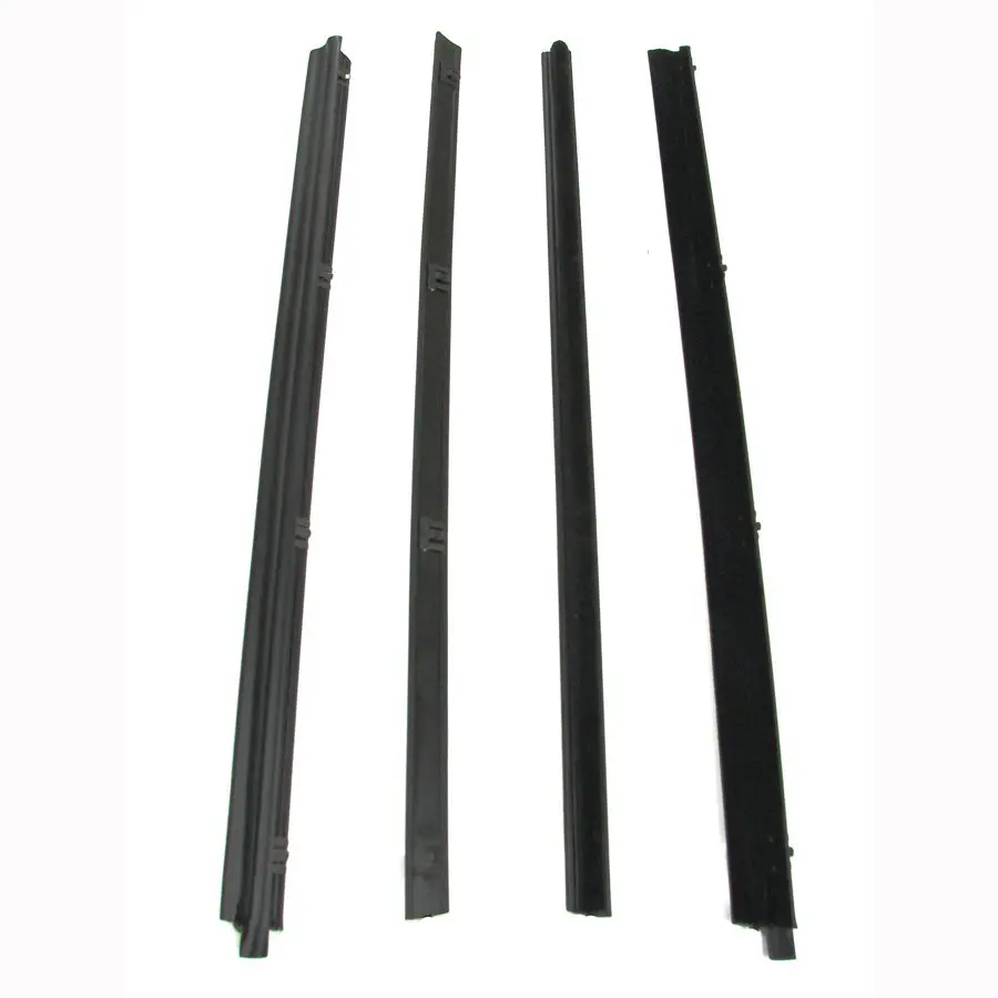 1976-1995 Jeep CJ5|CJ7|DJ5|Scrambler|Wrangler Beltline Molding 4 PC Kit – Driver and Passenger. The beltlines mount with the pre-applied clips on the top inner and outer part of the door to squeegee the door glass. This is a 4 piece kit that fits the driver and passenger doors of non-vented models. Protect your vehicle’s interior from the outside elements and reduce noise level while driving simply by replacing your dried-out or cracked weatherstrip with a proven product that’s accepted in the industry. These beltlines are made from the OEM specs to install and fit for an authentic appearance.