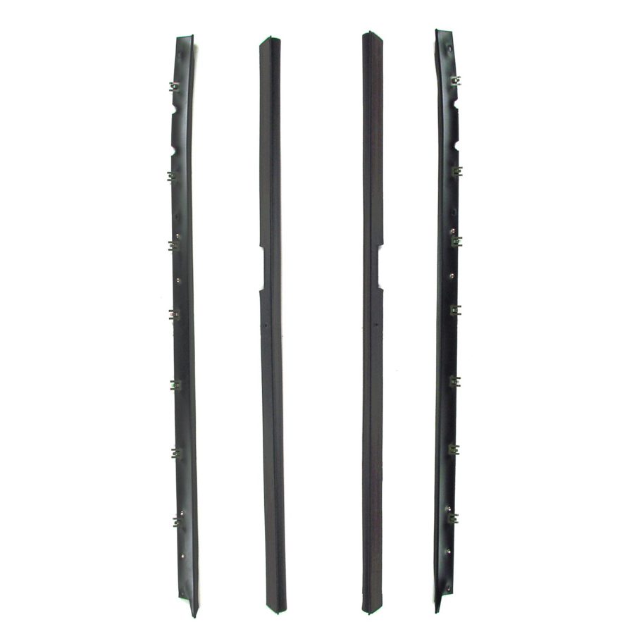 1984-1989 Chevrolet Corvette Beltline 4 PC Molding Kit – Driver and Passenger. These beltline moldings mount with the pre-applied clips on the left & right doors to sweep the inside & outside of the glass. Our product is made from the original specs and from high quality ozone resistant materials to fit your vehicle.