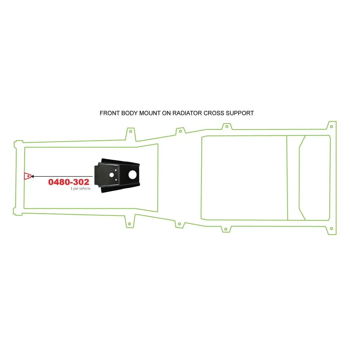 This 1987-1995 Jeep YJ Wrangler Front Body Mount fits 1987, 1988, 1989, 1990, 1991, 1992, 1993, 1994, 1995 Jeep YJ Wrangler.