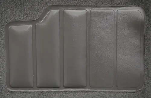 This flooring is also available as a vinyl mat as well. Vinyl mats are made of 1/8″ thick industrial, non-skid, textured vinyl that is vacuum molded to fit the contours of your vehicle’s floor. All vinyl mats come with separate jute backing material that will cover the footwell areas. Just select vinyl from the material style dropdown above for this option.