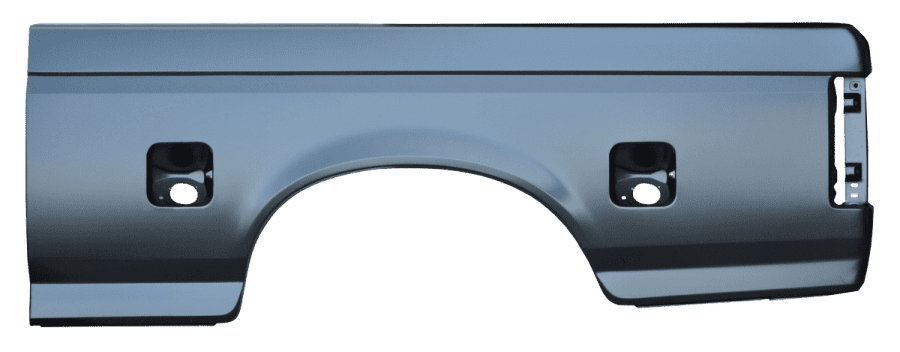 This 1987-1998 Ford Pickup 6′ dual tank bedside outer skin, Driver Side fits 1987, 1988, 1989, 1990, 1991, 1992, 1993, 1994, 1995, 1996, Ford F150, and 1987, 1988, 1989, 1990, 1991, 1992, 1993, 1994, 1995, 1996, 1997, 1998 Ford F-250 and F-350 Pickup Truck.