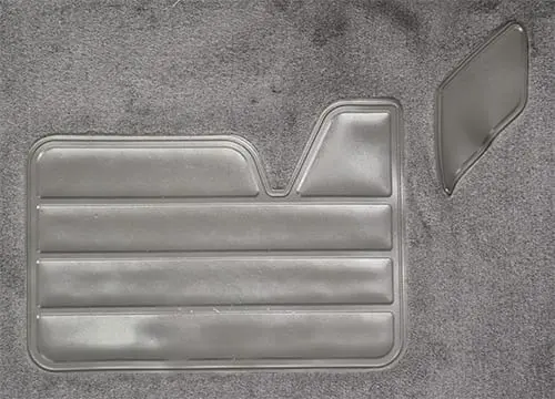 Most carpets are heat molded to precisely fit the contours of your vehicle’s floor. Please see the Style tab to determine the construction method used for a particular item. Carpets come with a heat-sealed heel pad by the pedal area and 40 oz. (1/2″) jute padding in the footwell areas. For even more cushion, jute padding is also available by the yard.