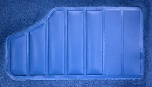 Most carpets are heat molded to precisely fit the contours of your vehicle’s floor. Please see the Style tab to determine the construction method used for a particular item. Carpets come with a heat-sealed heel pad by the pedal area and 40 oz. (1/2″) jute padding in the footwell areas. For even more cushion, jute padding is also available by the yard.