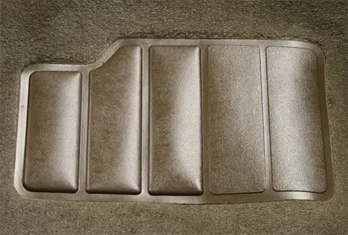 Most carpets are heat molded to precisely fit the contours of your vehicle’s floor. Please see the Style tab to determine the construction method used for a particular item. Carpets come with a heat-sealed heel pad by the pedal area and 40 oz. (1/2″) jute padding in the footwell areas. For even more cushion, jute padding is also available by the yard.