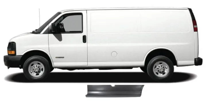 1996-2017 Chevy/GMC Full Size Van Lower Side Panel Driver Side. Fits standard wheelbase model and not long wheelbase. SWB is 135″. LWB is 155″.