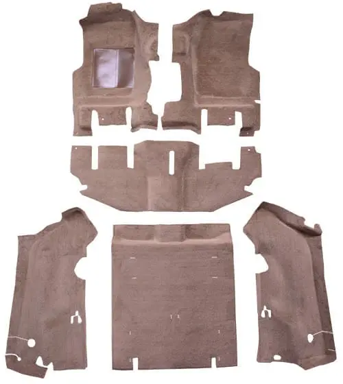 Most carpets are heat molded to precisely fit the contours of your vehicle’s floor. Please see the Style tab to determine the construction method used for a particular item. Carpets come with a heat-sealed heel pad by the pedal area and 40 oz. (1/2″) jute padding in the footwell areas. For even more cushion, jute padding is also available by the yard.