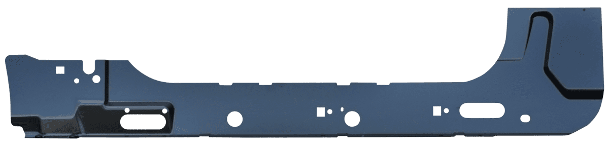 All of our rocker panels are stamped steel. The stamping process starts with a 3D scan of an OEM part which produces an OEM-like fitment. The old panel will need to be cut out so that the new one can be welded in its place. The exception to this is”Slip-on”panels. Any panel labeled as “Slip-on” can be placed over top of the original panel, and secured with an adhesive, like Silaprene, rivets, welded, etc.