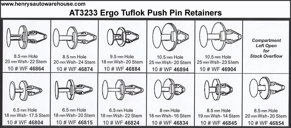 (6) WF46894 – Push Pin Rivet 10.5mm Hole-25mm Washer-20mm Stem